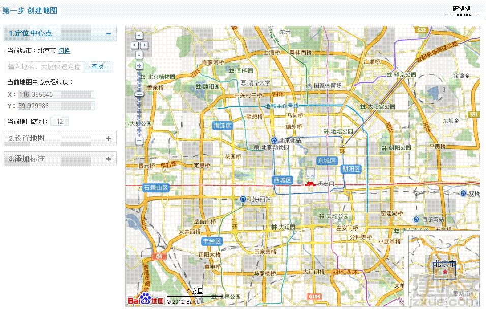 3.添加標注,其實網站建設者未必知道該企業的準確位置,往往不知道該標在哪。這時候,我們可以打開http://map.baidu.com/ ,查詢到詳細坐標,標注上去。這個標記圖標是可以換的,根據自己喜歡來設置吧。記得標注完以后輸入名稱和備注。