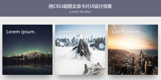 這是一款使用純CSS3制作的超酷文章卡片UI設計效果。該文章卡片帶有陰影效果,當鼠標滑過卡片時,文章的描述信息會以滑動動畫的方式顯示在卡片中。
