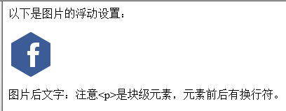 <p>圖片后文字:注意&lt;p&gt;是塊級元素,元素前后有換行符。</p>