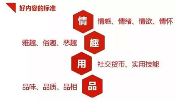 拆解出來(lái),內(nèi)容運(yùn)營(yíng)的四要素:1、方式:產(chǎn)出內(nèi)容和重組內(nèi)容;2、目的:滿足用戶內(nèi)容消費(fèi)的需求;3、效果:使用次數(shù)和品牌認(rèn)知度;4、能力:策劃和文案。