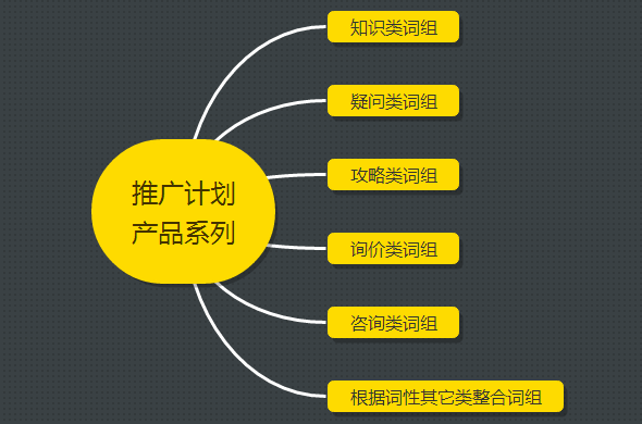 如上圖,針對一個具體的產品小編劃分了知識類詞組、疑問類詞組、攻略類詞組、詢價類詞組、咨詢類詞組以及其他類型的詞組,其實不管如何劃分,只要是想做到精細化運作的用戶均需要根據詞性有針對性的構建關鍵詞組,因為一個推廣組里的關鍵詞整合了一類用戶的核心訴求,推廣組建好之后,后期的創意描述、落地頁面的選擇都會圍繞著用戶的真實需求進行設定,以保證用戶點擊進去之后能夠最大化的滿足用戶需求,促進轉化。