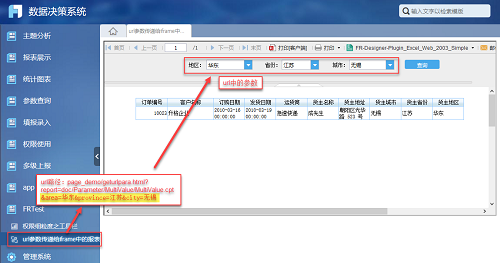 江蘇&city=無錫,名稱為:url參數傳遞給iframe中的報表,如下圖: