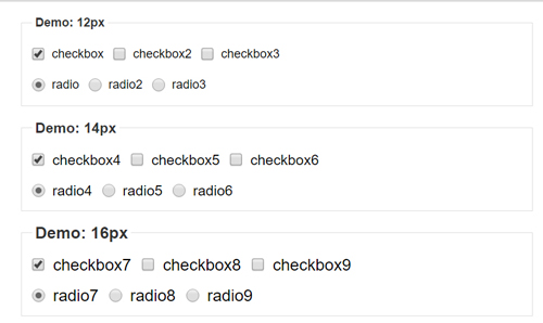 .form { font: 14px/18px Arial, Helvetica, sans-serif; } .form input, .form label { vertical-align: middle; } .form label { margin-right: 6px; } .form_checkbox, .form_radio { margin: 0 3px 0 0;/*與右側(cè)文字的間距*/ padding: 0; width: 13px; height: 13px; /*ie7 ie6 根據(jù)不同的 font-size 設置不同的值*/ *vertical-align: 1px; }
